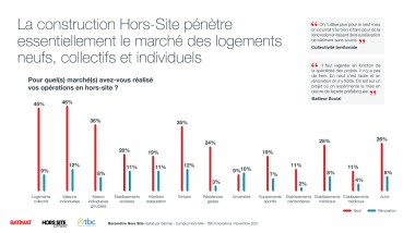 « Une tendance constructive prometteuse » : ce pari sur l'avenir du marché du hors-site est-il corroboré par les chiffres ? C'est ce que pensent en tous cas les initiateurs du 1er baromètre* dédié à ce secteur que sont Batimat, Campus Hors-Site, avec le soutien du Plan d’Investissement d’Avenir, et TBC Innovations.