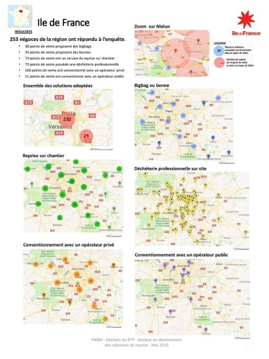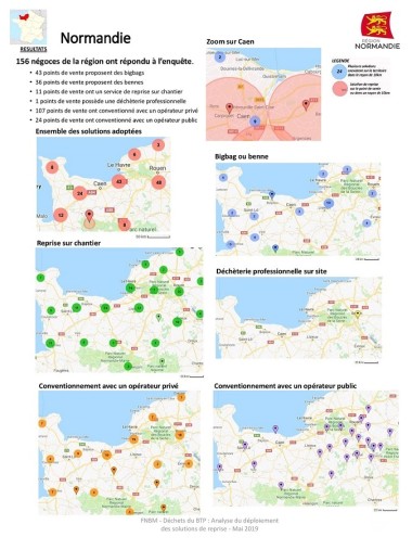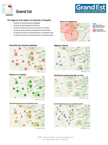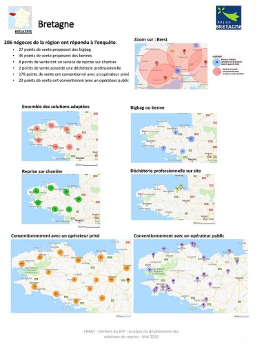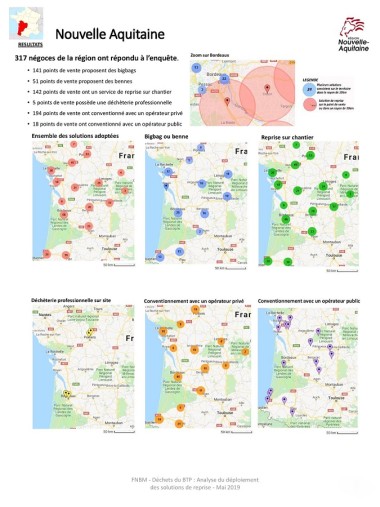 projet européen InterReg France-Wallonie-Vlaanderen. Dans son viseur ? « Identifier ou créer des synergies à l’échelle du territoire en matière de gestion des déchets, notamment dans le cadre de projets de (dé)construction, précise la fédération. Les territoires ciblés par ce projet sont principalement les Hauts-de-France, les Ardennes, ainsi que les provinces flamandes et wallonnes frontalières. » Reste qu'en publiant une première cartographie détaillée des solutions et dispositifs mis en place par les négoces matériaux et multispécialistes, la FNBM témoigne non seulement d'« une profession mobilisée pour répondre à cette obligation légale qui pèse sur l’activité du négoce », mais elle met aussi au grand jour « l’engagement des distributeurs de matériaux de construction dans un schéma vertueux au service de ses clients et dont l’équilibre ne doit pas être perturbé ». Dans