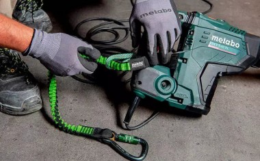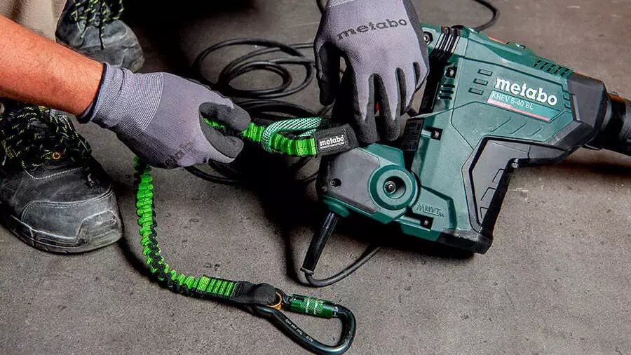 Près de 80 % des outils électriques pèsent au maximum 5 kg. Pour ces machines, Metabo a conçu une nouvelle sangle de protection pour outils disponible au choix avec mousqueton et dragonne ou en version “Quick Connect” avec des mousquetons aux deux extrémités.