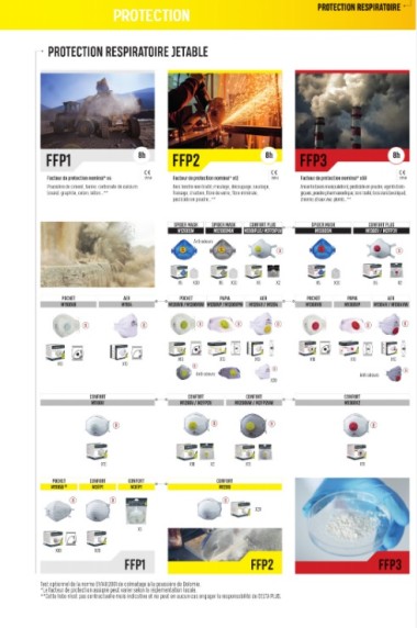 EN PHOTO • Sur les 30 pages du catalogue dédiées à l’univers de la protection, un folio se consacre à l’offre en masques respiratoires à usage unique (FFP1, FFP2 et FFP3). Si le port du masque devient obligatoire dans les entreprises à partir du 1er septembre prochain, Élisabeth Borne, la ministre du Travail, a annoncé ce 24 août que des dérogations « pour les activités pour lesquelles c’est très pénalisant » sans en préciser le périmètre pour l’instant.