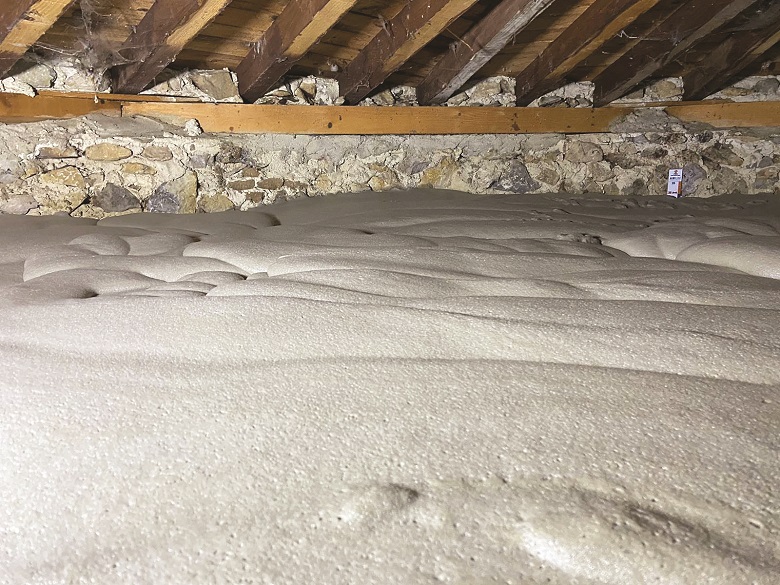 Si Airium Combles est thermiquement très performant, il est moins facile à mettre en œuvre qu’une solution classique. Filière humide oblige, le processus de préparation par malaxage, de coulage, de nettoyage de la machine demande deux fois plus de temps. En effet, deux heures sont nécessaires pour isoler 100 m² de combles sur une épaisseur de 26 cm, afin d’obtenir un R de 7, contre une heure pour une isolation à base de laine minérale, par exemple. Son poids de 50 kg par m3 (soit environ 15 kg par m2 pour 26 cm d’épaisseur) permet un coulage sur tous les supports sans risque de surcharge des planchers, sauf la plaque de plâtre pour laquelle des tests sont en cours. Le temps de séchage en surface ne demande que quelques heures, mais nécessite plusieurs jours pour un séchage à cœur. Cet isolant étant assez friable, il est possible de marcher dessus mais uniquement de manière très occasionnelle. Enfin, côté tarif, le fabricant a souhaité proposer cette solution au prix du marché, dans la fourchette haute de l’ouate de cellulose. Marc Wast