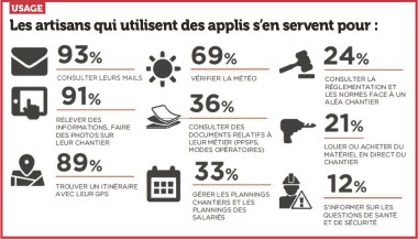 Qu’en est-il alors des applications mobiles ? Si l’utilisation du smartphone dans la vie courante par les artisans, rejoint les tendances de la société en général, sur les chantiers ou dans l’atelier, en revanche, c’est encore à peine une majorité qui se dessine. Et encore, dans les zones urbaines, car en campagne, le chiffre descend à 39 %. L’existence de zones blanches pouvant expliquer cet écart. L’âge aussi joue son rôle : 55 % des répondants de moins 40 ans contre 36 % des répondants de plus de 51 ans utilisent les applis sur leur lieu de travail. Quoi qu’il en soit, cette étude montre un fait : sur les chantiers, les artisans sont là pour mettre en œuvre, et les applis proposées doivent donc avant tout permettre des actions rapides : consultation des mails, relevé des informations et prises de photos sur le chantier, utilisation du GPS, consultation de la météo. À l’inverse, louer ou acheter du matériel en ligne via une application, gérer les plannings, consulter des documents, réglementation, normes, ne se font pas sur le chantier. Autre atout souvent mis en avant par les tenants de la transition numérique : le levier économique que représente le digital. De plus en plus de chefs d'entreprises artisanales ont franchi un premier pas en créant un site internet, d’autres manient avec aisance les réseaux sociaux pour promouvoir leur savoir-faire. Mais là encore, on est loin de la majorité et la taille de l’entreprise joue un grand rôle : l’étude diligentée par la Capeb, révélait ainsi que 50 % des chefs d'entreprise avec 1 à 5 salariés avaient un site internet contre 64 % des chefs d'entreprise avec 10 à 19 salariés. Mais alors, quels sont donc les freins persistants ? Les artisans eux-mêmes évoquent le manque de temps pour découvrir et s’approprier ces nouveaux outils... Mais aussi leur coût trop élevé et le sentiment de ne pas avoir les compétences suffisantes. Pour que la révolution numérique en cours ne laisse personne de côté, il est temps qu’un véritable plan d’accompagnement soit mis en place à la mesure de ces entreprises artisanales qui voudraient se lancer.