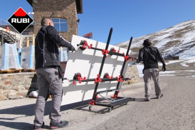 « Nous avons développé un système de transport pour les carreaux de grand format grâce à des ventouses : Slab Trans Heavy Duty, un transporteur spécialement conçu pour la manipulation de plaques et de carreaux de céramique plus épais (plus lourds) », présente Bruno François. Slab Trans intègre le système Easy Fix. Tous les composants du transporteur sont amovibles par l'avant, ce qui augmente la facilité et la rapidité de montage et de démontage.