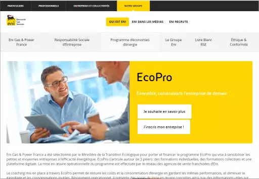 Dans la palette des actions en faveur de la rénovation énergétique, Eni a également mis au point deux programmes distincts. EcoPro, comme son nom l'indique s'adresse aux professionnels, pour les inciter à adopter des solutions concrètres pour réduire leur facture. L'énergéticien annonce avoir déjà touché 11 500 TPE et PME et se donne pour objectif la barre des 12000 en fin d'année.