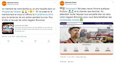 À l’image, par exemple, des récents spots corporate de Décathlon (l’une des 13 enseignes du groupe Adeo), le réseau frère Bricoman valorise le capital-sympathie de sa marque-enseigne. Mise en ligne le 27 mai dernier, une courte vidéo dévoilait une action de solidarité destinée à remercier les personnels soignants des centres hospitaliers et des Ehpad sur le front depuis le début de la crise sanitaire. Avec une promesse clients claire et sans ambiguïté : « offrir » à ceux qui ont constitué la première ligne « les avantages des “clients VIP cartés Pro” » du distributeur. Autrement dit : les quelque 35 000 clients professionnels bénéficiant du programme de fidélité Premium Pro et que revendique Bricoman à ce jour. « L’idée émane de l’interne. Mais il ne s’agissait absolument pas de surfer sur une tendance… opportuniste, confie Thomas Gonin, le responsable marketing et communication. Humblement, sans aucune prétention, le message se veut sincère et bienveillant ! ». En 1 mn 18, la vidéo postée sur Youtube entend s’adresser à tous les personnels du milieu hospitalier : les soignants, mais aussi les collaborateurs des fonctions connexes (cuisines centrales, administratif, agents d’entretien et de nettoyage, etc.). Voire plus ! « En fonction de la sensibilité de chaque leader local [directeur de dépôt Bricoman], les pompiers, les policiers, les gendarmes… : bref, tous ceux qui se sont largement investis et battu au quotidien durant la crise sanitaire pour prendre soin de nos familles, nos amis, nos collègues », poursuit le manager.