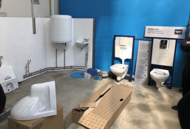 Difficile de le manquer. Du 15 au 17 janvier, un immense camion Grohe a investi l’entrée du CFA de Rueil-Malmaison (92). Après une première étape au CFA d’Ocquerre (77), le semi-remorque a fait un arrêt de trois jours afin de présenter les dernières nouveautés du fabricant allemand aux apprentis de l’établissement. « L’objectif n’est pas seulement de présenter nos nouveautés mais de fournir des produits techniques aux étudiants et à leurs professeurs afin de les aider dans leur formation. En s’appuyant sur certains produits, nous pouvons les faire réfléchir à différentes questions comme le fonctionnement ou le mécanisme », explique le responsable technique et formation chez Grohe. Le concept d’aller à la rencontre des CFA, lancé en 2015, semble plaire. En effet, plus de 400 jeunes (dont une partie venant d’autres CFA d’Île-de-France) ont été accueillis pendant ces trois jours. Parmi les produits présentés dans ce camion, les apprentis ont pu découvrir et manipuler des douchettes, des robinets, un WC lavant et des bâti-supports dont le dernier né de la marque, le Rapid SLX. Prévu pour février 2020, cette nouveauté se démarque par un régulateur de chasse ajustable, prêt pour les cuvettes sans bride et un boîtier de dérivation électrique intégré. « Nous voulons mettre en avant des produits haut de gamme qui sont de plus en plus faciles à poser. L’avenir de la profession passe par une montée en gamme », ajoute le responsable technique et formation de Grohe.