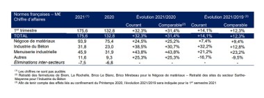 Jusqu’ici, tout va bien ! Effet(s) liés au plan de relance et à la rénovation énergétique – son bras armé sur le marché du Bâtiment –, poursuite de la reprise entamée maintenant depuis un an dans la filière ? Réponse : les trois à la fois. En publiant ce 11 mai son chiffre d’affaires du premier trimestre 2021 (à 175,6 M€ HT), le groupe multirégional a en effet fait état d’« un début d’exercice très dynamique » et d’« une croissance soutenue » : à +32,3 % en courant et +31,4 % en comparable. Se situant dans les mêmes eaux qu'à la fin 2020, ces chiffres sont pourtant à mettre en perspective avec un historique 2020 dont les performances avaient été amputées par le début de la crise de Covid-19, mais aussi à comparer à une activité artisanale à +9,5 % sur les trois premiers mois de 2021 selon le dernier baromètre de la Capeb. Dans son communiqué financier, Hérige souligne que ce « bon démarrage de l’année » concerne l’ensemble de ses branches. D’abord le pôle Négoce : ses enseignes VM et LNTP ont enregistré un gain de chiffre d’affaires de +24,5 % (+25,2 % en comparable) portés par les points de vente dits généralistes et « la très forte activité en Travaux Publics ».