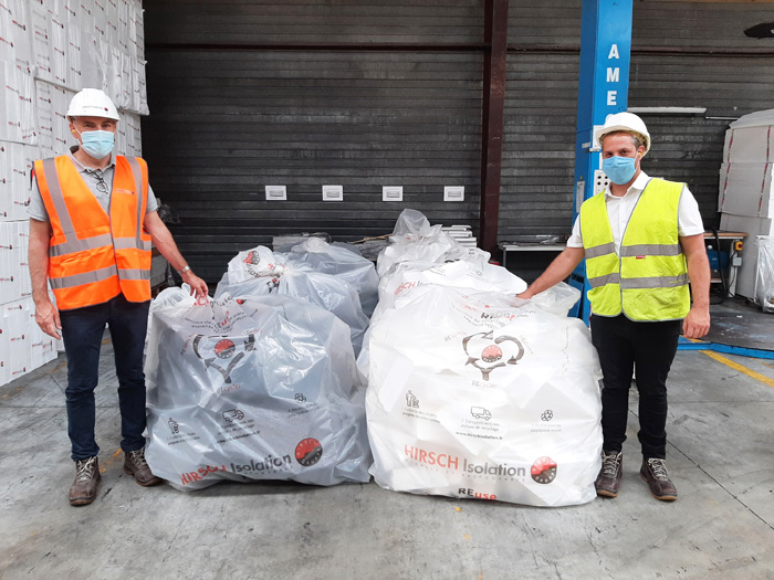 Pour aller au bout de sa démarche durable et responsable, Hirsch Isolation propose désormais un service de collecte et de recyclage des déchets en direct à ses clients. D’abord, le client définit ses besoins avec le Chef de Marché. Ensuite, une formation est proposée aux équipes en cas de besoin. Enfin, les sacs de récupération des chutes de PSE sont livrés en même temps que la commande sur le chantier. Les sacs récupérés auprès des entreprises, ou massifiés chez les distributeurs, sont amenés à l’usine ou à l’atelier de recyclage du réseau partenaire le plus proche. Par ailleurs, un travail de maillage local auprès de déchetteries est également mené afin d’éviter l’enfouissement. L’entreprise assure ainsi une continuité du service au plus proche du chantier. Ce nouveau partenariat a le double avantage de massifier le service de collecte et de réduire l’impact CO2 lié au transport.