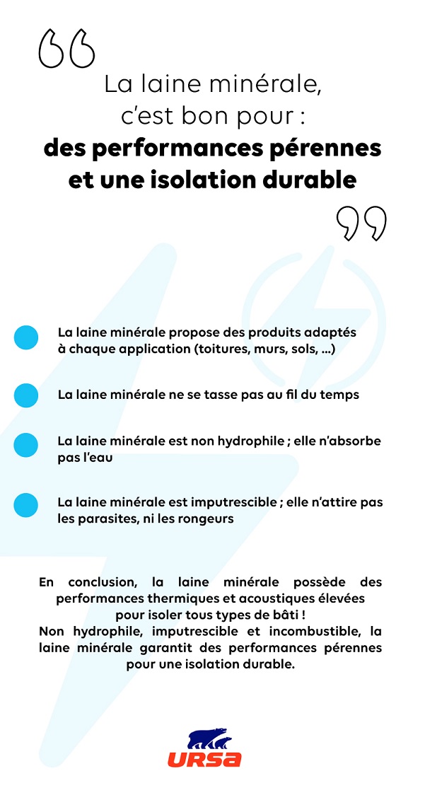 Infographie - La laine minérale, c'est bon pour : des performances pérennes et une isolation durable