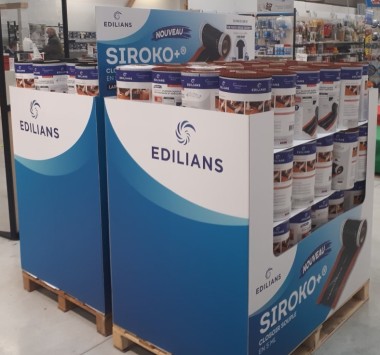 Même si le closoir appartient à la famille des produits de commodités, Edilians a voulu assurer le lancement de cette gamme à travers une opération commerciale en s’appuyant sur les négoces. A leur demande, l’industriel a travaillé sur l’achat d’impulsion en leur proposant d’intégrer dans leur libre-service des PalBox, dotées d'un fronton à placer sur le dessus de la palette et des affiches A3 pour animer le point de vente. Les palettes sont composées de 72 ou 96 rouleaux sur trois références : largeur 310 mm coloris rouge, largeur 310 mm coloris ardoise et largeur 370 mm coloris rouge. L’opération promotionnelle qui accompagne ce lancement jusqu’au 30 juin, prévoit de faire gagner un tee-shirt aux professionnels pour l’achat de 6 rouleaux Siroko+ mais surtout de leur proposer de participer à un grand tirage au sort avec outils de chantiers à la clé. Rendez-vous pour le tirage des bulletins le 20 juillet prochain.