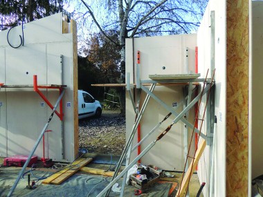 Un process de mise en œuvre rigoureuxDans le but de renforcer la mise en œuvre de la sécurité collective, une console de montage a été conçue en interne par le fabricant. Les panneaux doivent être maintenus jusqu’au coulage du béton autoplaçant. C’est à ce moment-là qu’intervient la console en permettant de maintenir le panneau et de régler sa verticalité. Incorporée au système de fixation, elle facilite le travail en hauteur. De même, afin de faciliter le maniement des panneaux, Syscobat a créé une machine simple et sans entretien. Permettant à une personne seule de manipuler les panneaux rapidement et sans effort, elle est composée d’un ensemble de glissières verticales et horizontales facilitant et simplifiant l’emboîtement des panneaux qui seront par la suite solidarisés entre eux par vissage. M. W.