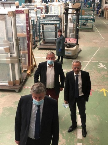 EN PHOTO • La semaine dernière, Henri Janneau, le président du groupe éponyme nantais (avec le masque de protection) passait en revue avec le préfet de région l'ensemble des protocoles mis en place dans son usine.