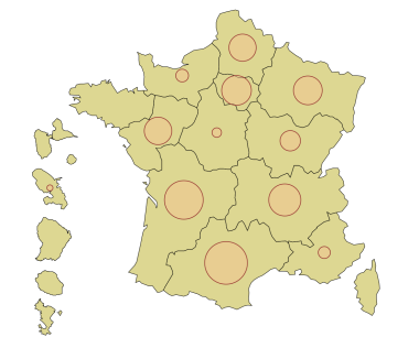 Ce secteur des produits de la construction est très concentré, puisque seules 63 unités légales (sociétés ou entreprises) déclarent fabriquer des produits en terre cuite pour la construction. Ces établissements emploient environ 4 660 personnes et sont implantés à proximité de terrains argileux d’où est extraite la matière première. Trois régions dominent largement ce panorama de la terre cuite : l’Occitanie avec plus de 1 000 emplois, la Nouvelle-Aquitaine (830) et Auvergne-Rhône Alpes (570).