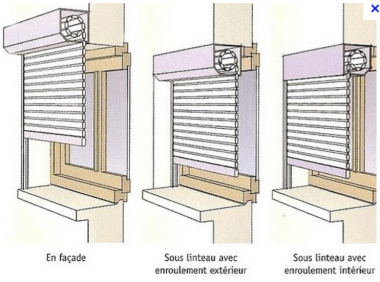 Il existe trois types de pose : en façade, sous linteau avec enroulement extérieur et sous linteau avec enroulement intérieur.