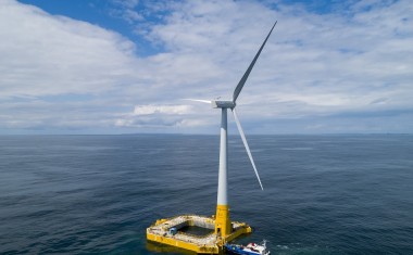 L’entreprise française, qui a travaillé avec Bouygues Travaux Publics, valide ainsi les performances et la tenue à la mer de son design Damping Pool où un plan d’eau central vient amortir les mouvements de l’ensemble. La production d’énergie n’a donc pas été perturbée par le tangage et le roulis. Rappelons que l’Ideol Floatgen est la première éolienne offshore française, déployée sur le site d’essai Sem-Rev au large du Croisic (Loire-Atlantique) depuis le mois de mai 2018. Un second prototype de 3 MW, baptisé Hibiki, a été installé au large de Kitakyūshū (Japon) avec le concours d’Hitachi, à la fin du mois d’août 2018. Là-bas, elle a fait face à pas moins de trois typhons de catégorie de 5, également sans faillir. Ideol s’estime désormais prêt à passer au stade industriel pour l’éolien flottant, dont la caractéristique principale est de pouvoir être implanté plus au large que l’éolien offshore classique, là où les fonds dépassent les 50 mètres. Le potentiel mondial est évalué à 10 000 TWh/an (contre seulement 450 TWh à l’hydrolien).