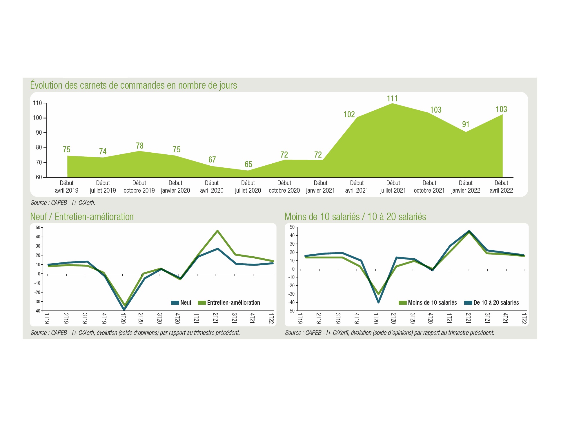 Face à cette forte activité, la situation de l’emploi a, elle aussi, fortement évoluée pour répondre aux besoins. Les entreprises ont ainsi créé 26 000 emplois soit une hausse de 4,2%. Mais cette progression conduit à présent le président de la Capeb à s’interroger sur la pérennité de ces emplois, en cas de retournement de conjoncture dans les prochains mois. Malgré des carnets de commandes qui ont augmenté pour s’établir à 103 jours, des prémisses de ralentissement apparaissent dans les indicateurs. Ce que montre par exemple, sur les carnets de commande, le segment de l’entretien-rénovation. Le renchérissement des matériaux et équipements, la confiance moindre des ménages pourraient réduire les montants des devis déjà signés, voir les annuler totalement. Les entreprises ayant répercuté les hausses étant plus nombreuses qu’en 2021, faute d’une sortie de crise prévisible à court terme. Parallèlement, la tension et les besoins de trésoreries s’accroissent : 20 % des entreprises déclarent une détérioration de leur trésorerie et 8 % une amélioration, soit un solde à -12 points (-6,2 pour la moyenne de long terme). Même tendance concernant les marges : 40 % des entreprises déclarent une baisse contre 5 % une hausse, soit un solde d’opinions de - 35 points. Tous ces paramètres conduisent le service économique de la Capeb à la plus grande prudence pour établir une tendance annuelle. Une hypothèse et « non pas une prévision » comprise dans une fourchette entre +1,5 et +2,5% pour 2022.