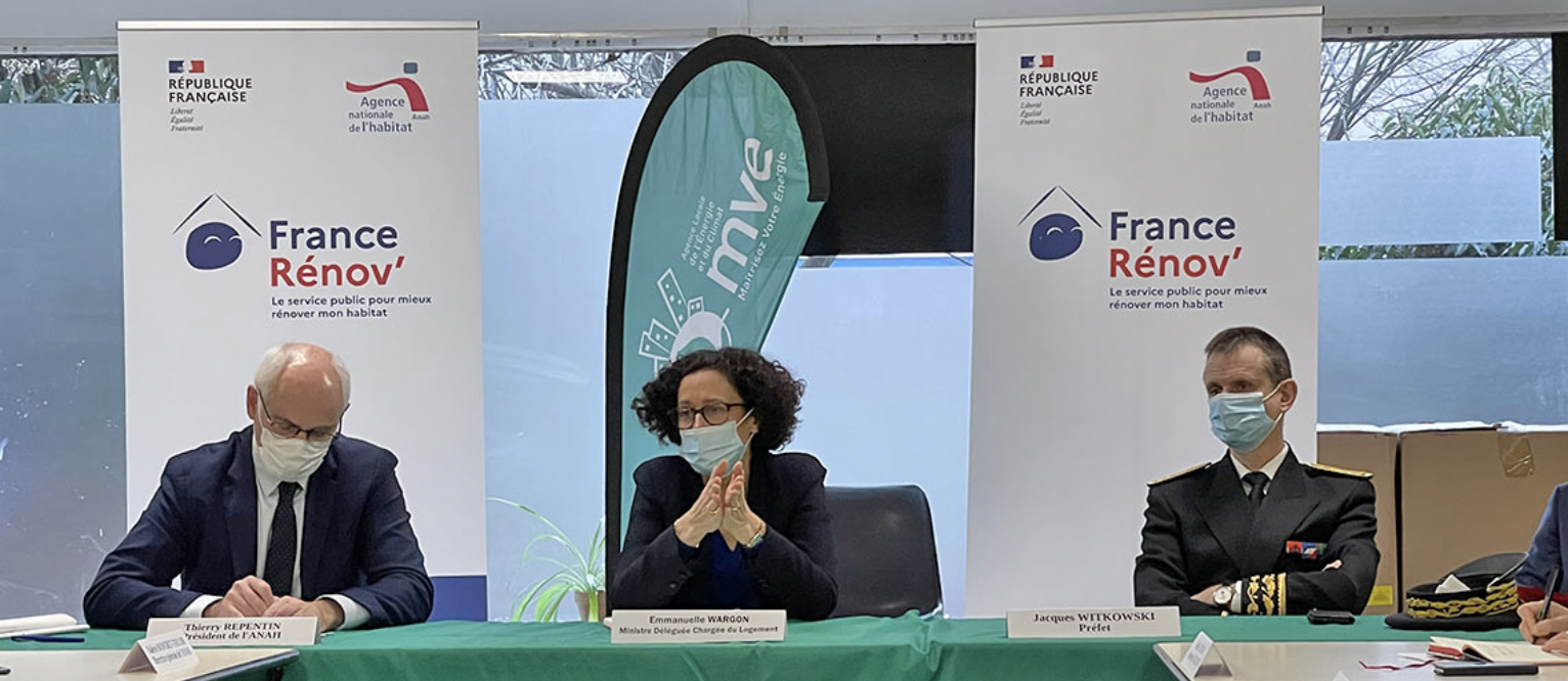 Entrée en vigueur le 1er janvier 2022, la marque est dirigée par l’Anah. Une direction sélectionnée par la ministre, qui explique qu’il y a avait une double organisation au départ. Une de l’Anah et une de l’Ademe. Mme Wargon a souhaité réunir les deux sous la banderole de France Rénov’, mais confier à l’Anah la totalité de la responsabilité. Son président, Thierry Repentin, explique qu'il envisage 800.000 logements rénovés en 2022.