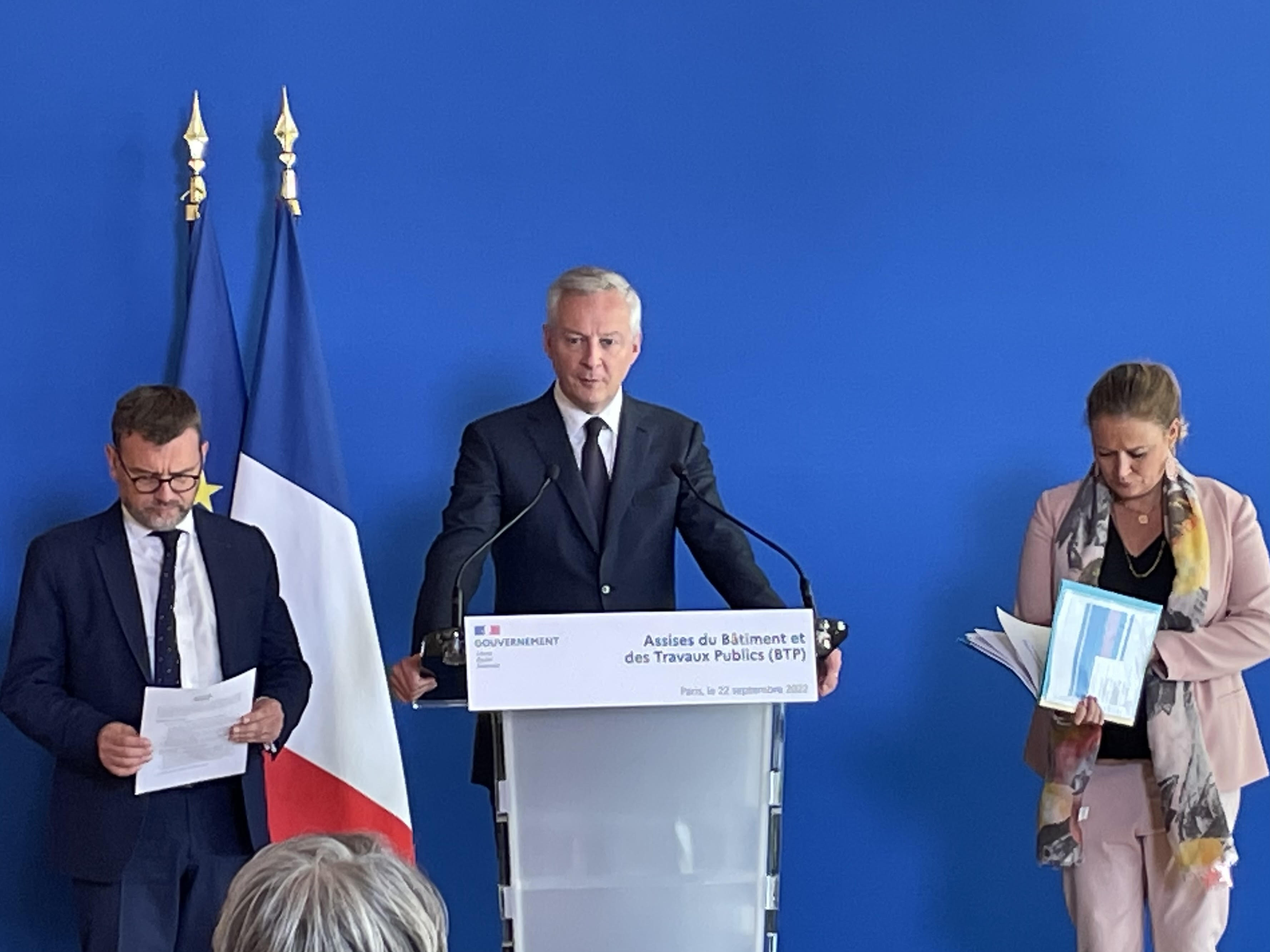 Bruno Le Maire souhaitait « un état d’esprit constructif » pour ces Assises de la Construction, menées depuis plusieurs mois par le biais de consultations d’une quinzaine de fédérations professionnelles et de plus de 200 représentants de toute la filière du bâtiment, des travaux publics, des matériaux de construction, du négoce et de la maîtrise d’œuvre. Ce jeudi 22 septembre, pour un premier point d’étape, le ministre de l’Économie et des Finances, résume : « Ces Assises sont une promesse faite lors de l’assemblée générale de la Capeb puis renouvelée auprès d’autres fédérations de discuter des sujets réglementaires, fiscaux et financiers à repenser ensemble. Les Assises sont une méthode, celle de la concertation et du dialogue pour repenser le bâtiment et les travaux publics pour les décennies à venir, dans une démarche de très long terme. Une méthode élargie et durable, qui se poursuivra fin 2022 et début 2023, avec un nouveau point au printemps prochain, dans 6 mois, pour annoncer des décisions supplémentaires ».
