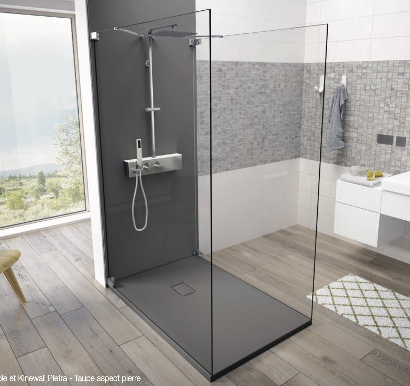 Pour répondre mieux encore aux besoins du marché, Kinedo propose deux déclinaisons de son receveur best-seller Kinesurf : en blanc brillant et non découpable ; ou découpable avec un grand choix de textures (pierre en 5 couleurs, mat grainé en 6 couleurs et lisse en blanc brillant). Naturellement non glissants et reconnus pour leur légèreté, ces receveurs sont conçus en Biotec, un béton de synthèse en billes céramiques et liant polyuréthane, recouvert de Biocryl en surface, et un cadre périmétral en acier (ou fibre de verre pour le modèle découpable) ajoute encore à leur robustesse. Ils sont disponibles en formats carré, quart de rond ou rectangulaire, et en dimensions allant de 80 à 180 cm en longueur et de 70 à 100 cm en largeur pour des épaisseurs de 4 ou 9/10,5 cm. De plus, ils s’adaptent à tout type de pose : avec décaissement total, faible ou sans décaissement.