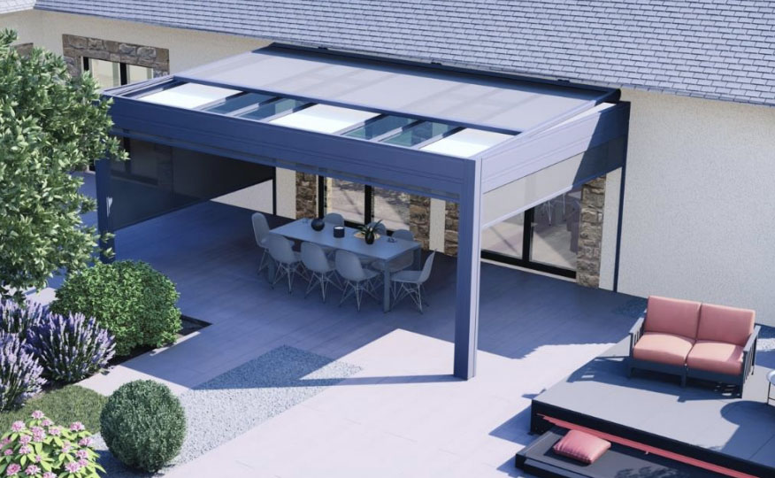 La gamme de pergolas conçue par Amexso propose aux artisans du sur-mesure prêt à poser et répond à toutes les besoins et budgets des utilisateurs, offrant, au choix, quatre solutions différentes : pergola à toiture fixe, pergola jardin d’hiver, pergola rétractable à toile enroulée et carport. Tous ces types d’installations peuvent être personnalisés en couleur, choix de de la toiture, options protection solaire de toiture, option stores latéraux et de façade, éclairage Led…, offrant au total plus de 100 combinaisons. La structure de base, de 6,50 x 4 m sans poteaux intermédiaires, est en aluminium et certifiée Qualicoat et Qualimarine. Le remplissage de toiture combine des panneaux pleins blancs, des panneaux de polycarbonate Crystal (translucide) ou Opal (opaque), ou du simple vitrage feuilleté.