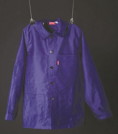 C’est d’ailleurs le bleu de travail de Lafont qui ouvre le parcours de l’exposition. Cette pièce est emblématique des productions de la marque basée dans le Beaujolais, près de Lyon, depuis 1844. À tel point qu’elle s’est imposée « comme une source d’inspiration ou comme un basique de l’industrie de la mode », rappelle le fabricant. C’est même devenu l’un des emblèmes de la culture urbaine.
