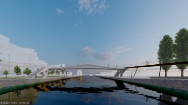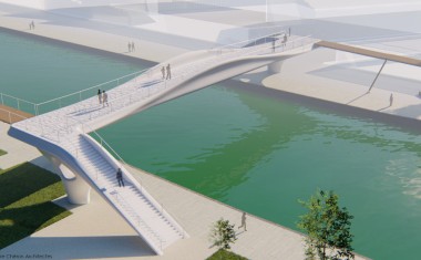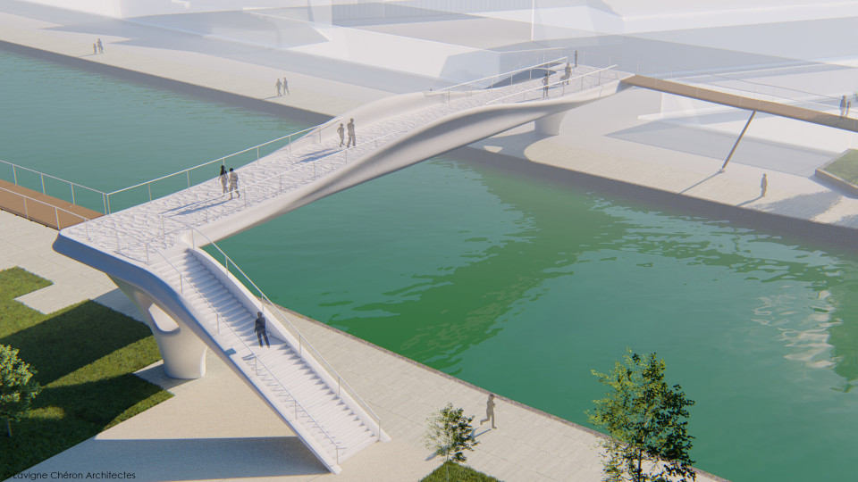 Plaine Commune Grand Paris a confié à un groupement dirigé par Freyssinet (spécialiste des ouvrages de génie civil), qui comprend Lavigne & Chéron Architectes (maîtrise d’œuvre), Quadric (ingénierie), XtreeE (impression béton) et LafargeHolcim (formulation du ciment), le soin de concevoir ce pont. Les acteurs du projet expliquent : « Cela combine des expertises technologiques complémentaires, ouvrant la voie à la réalisation d’éléments architecturaux et structurels complexes en béton et au développement de solutions sur mesure, à coûts et délais maîtrisés ». L’ouvrage sera évidemment conçu de façon numérique et les éléments produits en usine seront rapidement mis en œuvre sur site : « Moins de transport, suppression des coffrages, moins de matière consommée, grande liberté dans les formes », énumère XtreeE, qui avance une économie de matière de l’ordre de -60 %. La passerelle de Saint-Denis pourrait donc devenir précurseur d’une nouvelle façon de construire au 21e siècle. Notons qu’une passerelle imprimée 3D en métal existe déjà aux Pays-Bas (l’autre pays des canaux).