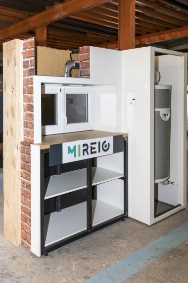 Pour le bâtiment collectif, c’est le module électrique Mireio (Atelier GA, Net@llia, Selvea) qui est arrivé en tête. La solution « s’appuie sur une centrale double flux thermodynamique collective et des chauffe-eau thermodynamiques individuels ». C’est le dispositif de pilotage qui présente l’innovation, avec un fonctionnement individuel par logement, qui assure l’optimisation énergétique avec un niveau de confort important (régulation pièce par pièce, qualité de l’air intérieur). La conception limite les nuisances de chantier avec un temps de déploiement de moins d’une demi-journée par logement. De plus, il n’y a aucune intervention de maintenance à prévoir : les capteurs sans fil, ni pile, reposent sur la technologie Enocean et les relevés ou diagnostics se font à distance. Les équipements présentent des performances intéressantes (COP de 9,5 avec -4 °C de température extérieure).