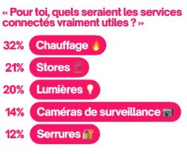 Dernier enseignement, les jeunes sont très partagés, et globalement peu enthousiastes vis-à-vis du logement connecté. La nouvelle génération se méfierait de l'arrivée massive et soudaine des assistants vocaux dans les foyers, qui soulève des questions quant à l'écoute, l'exploitation des données, la sécurité du logement (ex : piratage des systèmes de sécurité).