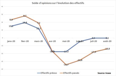 « En août 2020, les chefs d’entreprise restent relativement confiants sur les perspectives d’emploi pour les trois prochains mois. Le solde correspondant est quasi-stable, au-dessus de sa moyenne de longue période », commente l’Institut de la statistique. Les entrepreneurs sont même plus nombreux à déclarer avoir accru leurs effectifs au cours des trois derniers mois : le solde d’opinion correspondant continue de se redresser bien que restant au-dessous de sa moyenne de long terme.