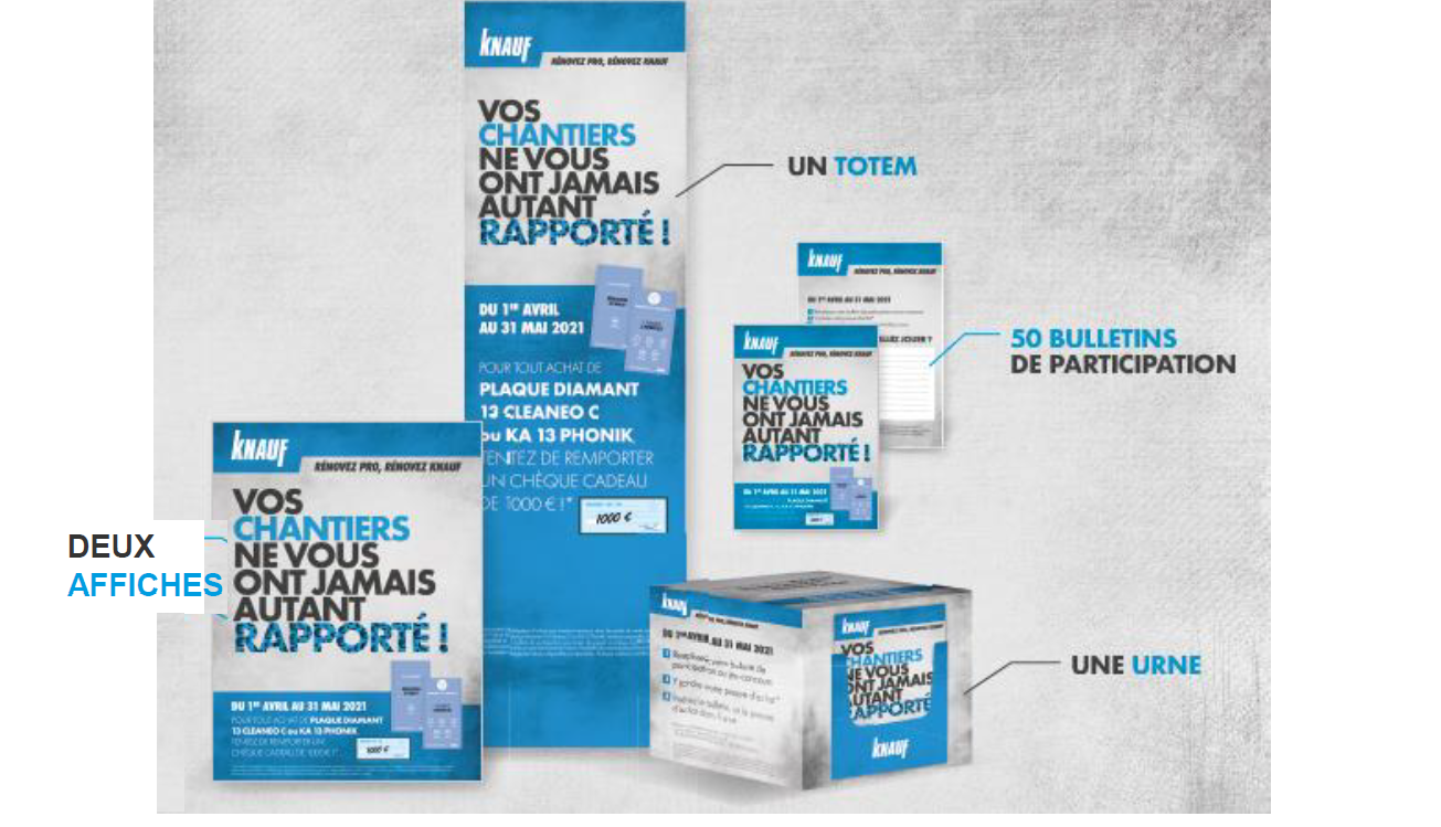 Du côté des négoces, pour tout achat d’une ou plusieurs palettes de plaques Diamant 13 CLEANEO C et d’une ou plusieurs palettes de plaques KA 13 PHONIK, le distributeur reçoit un cadeau pour ses équipes. De leur côté, pour tout achat de plaque DIAMANT 13 CLEANEO C ou KA 13 PHONIK, les artisans seront récompensés de goodies et de la possibilité de recevoir un chèque cadeau de 1000€ en participant à un grand tirage au sort. "Ils auront la possibilité de jouer plusieurs fois sur la période de l’opération", commente l'industriel qui précise également que cette opération n'est que le début d’une aventure pérenne, pour inscrire ces messages dans le temps à travers d’autres opérations d’animation et d’information du marché.