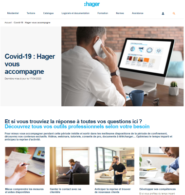 « Notre réflexion en amont de cette initiative était de définir comment accompagner les électriciens en cette période délicate, de les informer en décortiquant l’information et de les préparer à rebondir dès la fin du confinement », explique Fabrice Canton, responsable Customer Marketing chez Hager France. En effet, depuis le début du confinement mis en place en mars dernier, le fabricant de solutions pour les installations électriques s’est fixé comme objectif de garder le contact avec les installateurs et les aider à anticiper le redémarrage leur activité en exploitant positivement cette période complexe. Après quelques semaines de réflexion, Hager a mis en place un programme 100% digital disponible sur son site internet. « Nous nous sommes d’abord tournés vers les réseaux sociaux », commente Fabrice Canton. En effet, sur Facebook, Hager dispose de deux groupes différents regroupant des artisans électriciens : « Hager pour les pros » et « Hager Elexium ». Le premier est destiné à tous les électriciens. « Jusqu’à maintenant, ce groupe était fermé c’est-à-dire accessible de l’extérieur mais réservé aux membres ayant été acceptés. Mais depuis quelques semaines, nous avons décidé de l’ouvrir pour permettre à chacun de profiter de ce que nous avons mis en place », précise Fabrice Canton. Le second groupe Facebook est dédié aux électriciens labélisés par Hager. Contrairement au premier, ce groupe est resté fermé et contient principalement des questions liées à la gestion d’une entreprise ou au développement de son activité.