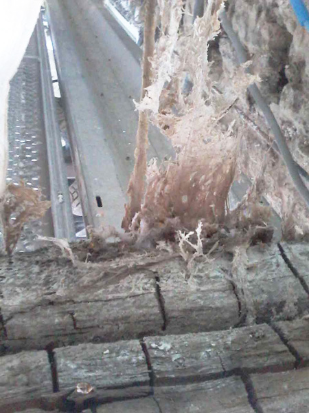 Légnde Photo : Les dégâts occasionnés par la mérule peuvent être très impressionnants.