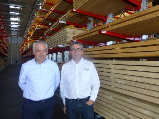 Avec ces outils plus fonctionnels, des zones de stockage gérées plus en hauteur, « nous gagnons 30 à 40% de volumes supplémentaires », calcule Olivier Siret, le directeur général de GMB. Les familles suivantes de produits ont été transférés : le bois massif dont GMB s’est fait une spécificité, alors que d’autres négociants locaux délaisseraient cette famille ; la charpente ; les produits de couverture ; les systèmes d’isolation.À Chemillé, GMB stocke environ 10 000 références. Des produits dont les adhérents peuvent consulter en ligne la disponibilité et le tarif, puis commander sur la plateforme GMB Web. Ils peuvent également commander leurs produits sur-mesure sur Dfiweb : l'appli développée par l’Orcab pour les 42 coopératives adhérentes.Si le regroupement logistique n’a pas eu d’impact sur les livraisons de GMB, il a permis d’améliorer la qualité du service ; notamment grâce au chargement des camions à l’abri des auvents. GMB s’est par ailleurs doté d’un bac à traitement de charpentes de grande longueur (16 mètres). Cet équipement vient compléter les outils existants : dédoubleur à charpente, scie numérique à panneaux et plaqueuse de chants. Thierry Goussin (correspondant régional, Pays-de-Loire)