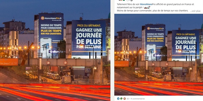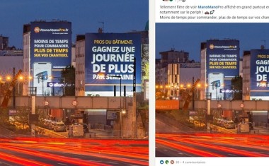 En milieu de semaine dernière, c’est sur LinkedIn que ManoManoPro a donc décidé de dévoiler un “énorme” dispositif de communication dont Zepros Négoce s’est déjà fait l’écho dans son édition #27 datée d’Avril-Mai 2021 (lire en pages 4-5). « ManoMano voit grand lorsqu’il lève des fonds, mais aussi lorsqu’il communique. Sa nouvelle campagne – avec en vedette sa division Pro – s’affiche en format géant “partout en France et ici sur le périphérique parisien !” », y relatait la rédaction.