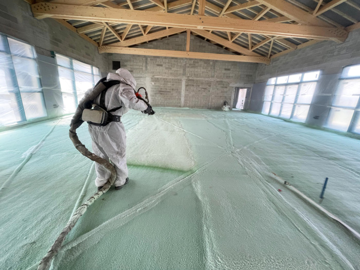 Ce type d’application s’étend aujourd’hui au logement collectif, au tertiaire, dans les ERP, et progresse dans l’isolation des planchers chauffants et rafraîchissants. En effet, un plancher sur trois repose aujourd’hui sur une solution isolante en PU privilégiée par les chauffagistes et les maîtres d’œuvres, attentifs au respect des exigences des DTU et des réglementations thermiques. En 2013, la gamme s’est étendue à l’isolation des murs et des plafonds pour répondre aux obligations de la RT 2012 en termes d’étanchéité à l’air. Enfin, en 2019 pour isoler les zones inaccessibles telles que les vides sanitaires de faible hauteur, le réseau s’est doté de robots autorisant l’isolation par projection des sous faces de planchers existants. Quant aux combles aménagés, le polyuréthane convient parfaitement à leur isolation thermique et acoustique.