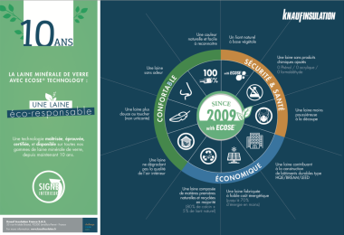 Un sujet pris à bras le corps par notre équipe, qui, depuis plus de 10 ans déjà, développe notre laine minérale de verre avec notre liant Ecose Technology, un liant qui bannit les composés chimiques.