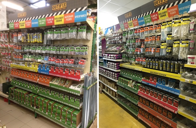 Autre considération à prendre en compte ? L’artisan veut aller vite et passer le moins de temps possible en rayon chez son négoce. « Avec des concepts didactiques segmentés par codes couleur pour identifier les différents univers, et des emballages en français très imagés et simplifiés, le temps passé dans le rayon par les clients a été réduit de moitié. Il ne lui faut plus que quelques secondes pour trouver le bon produit », souligne Philippe Kohan. Grâce au savoir-faire technique et à un travail de category management poussé sur l’offre et le rayon, Outifix affiche clairement ses ambitions. La marque va même jusqu’à promettre à ses clients revendeurs une croissance de chiffre d’affaires en rayon Fixations évaluée « entre 5 % et 10 % par an ». Franck Giudicelli