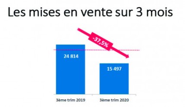 Après un recul de 53 % sur le 2e trimestre (comparé au 2e trimestre 2019), les mises en vente continuent à baisser : ‐37,5 % par rapport au T3 2019, tandis que sur neuf mois, l’offre plonge de 40 % (‐36 000 logements). Une situation enregistrée par l’ensemble des territoires. S’il n’y a pas de rebond au T4, « on s’achemine vers une année 2020 où les mises en vente représenteraient la moitié des bonnes années 2017 et 2018. », s’inquiète déjà la FPI, qui, faute de permis de construire, voit un vrai risque de pénurie arriver.