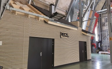 EN PHOTO • Depuis l’été dernier, le centre de formation Petzl baptisé V-Axess (V pour “verticalité”) qui est implanté au siège social de l’entreprise iséroise basée à Crolles, près de Grenoble, dispose d’une maison en bois avec charpente à échelle 1 pour permettre aux artisans de tester les EPI de la marque.
