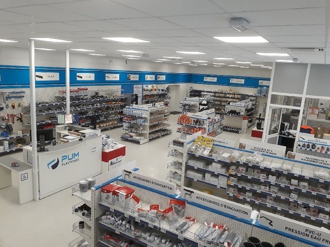 un Point.P et d’un Cédéo – regroupés sur un site commun depuis mai 2018 – afin de créer des synergies en termes d’offre complémentaire, ce nouveau PUM Plastiques est aussi voisin d’un dépôt Frans Bonhomme. Proposant « une offre produits maximisée [avec plus de 2 000 produits stockés] et un parcours clients optimisé », l’agence s’appuie actuellement sur une équipe de 4 collaborateurs. Courant septembre, un 5e salarié devrait intégrer l’agence. Sybille Daunis (DG de PUM Plastiques) et Guillaume Le Masne (directeur de la région Sud-Ouest de l’enseigne) inaugurent le nouveau point de vente ce 17 mai.