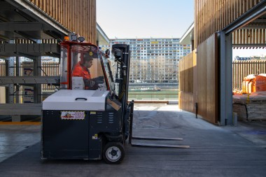 Comment désormais intégrer le négoce en centre-ville face à des politiques d’aménagement urbain plus contraignantes en termes de respect de l’environnement et d’impact visuel et sonore subi par les riverains…Ce point de vente qui aura nécessité près de 5 années, depuis l’obtention de l’appel d’offre jusqu’à son inauguration, illustre cette réponse et l’engagement de Saint-Gobain dans la construction « d’un avenir responsable », selon les termes de Jacques Pestre, directeur général de Point.P (en photo ci-contre), citant également au passage les initiatives du groupe sur le déploiement des déchetteries ou encore la flotte de camions « verts ». A fin 2019, 46 % des camions Point.P rouleront au GNV et 48% des chariots de manutention seront électriques. Parallèlement sur l’Ile-de-France, l’usage des péniches s’intensifient, Point.P Javel s’appuie d’ailleurs sur deux péniches pour son approvisionnement et ses livraisons.
