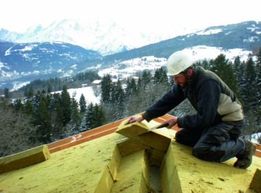 Dernièrement, plusieurs spécialistes ont lancé des produits adaptés au sarking, à l’image d’Isover (groupe Saint-Gobain) qui a présenté deux solutions de laine minérale nommées Luro (laine de verre) et Luroche (laine de roche). L’industriel détaille : « Le Luro offre une certaine facilité de découpe et d’utilisation grâce à sa légèreté. Dans les deux cas, la charpente bois reste apparente, pour un esthétisme certain, et la surface habitable reste préservée ». Les isolants se présentent sous la forme de panneaux rigides, applicables en simple ou double couche (croisée). Ils répondent bien entendu aux exigences de la RT 2012 avec des épaisseurs minimales de 220/225 mm pour des lambda d’environ 28 mW/m.K (performances certifiées par le CSTB). Avantage supplémentaire, ces panneaux atténuent les bruits extérieurs et notamment les bruits aériens dont souffrent certains riverains d’aéroports. Côté pose, Luro et Luroche sont posés bord à bord à joints décalés par-dessus un platelage continu (voliges ou panneaux de bois) muni d’une membrane pare-vapeur. Au-dessus de l’isolant, il conviendra de déployer un écran polypropylène avec de larges recouvrements (10 à 20 cm). Enfin, des contre-chevrons viennent fixer l’isolation et supporter un liteaunage qui sera recouvert par les tuiles. Isover ajoute : « En montagne, un second platelage sera fixé sur les contre-chevrons. Il supportera une étanchéité complémentaire ».