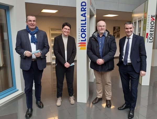EN PHOTO • L’intégration de Menuiserie Meslin est effective depuis le 1er janvier 2021. De gauche à droite : Pierre Lorillard (DG général délégué au commerce du Groupe Lorillard), Anabelle et Dominique Le Roy (dirigeants de Menuiserie Meslin) et Thierry Luce (président du Groupe Lorillard).