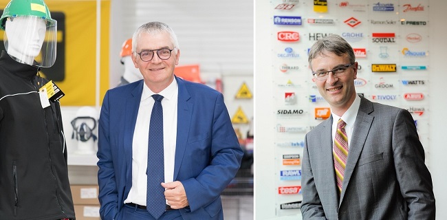 PHOTO • Fondateur du groupe Protecthoms en 1993, le PDG Laurent Lairy (à gauche) vient de céder son entreprise (46 M€ de CA 2020) à Grand Comptoir qui détient, entre autres, l’enseigne spécialisée en quincaillerie et plomberie Legallais. Il accompagne jusqu’à fin décembre 2021 cette intégration effective depuis ce 3 juin. Tout en conservant son autonomie, Protecthoms bénéficiera de « nouveaux moyens » et d’effets de synergies (achats, supply chain…). DG de Grand Comptoir, Philippe Nantermoz (à droite) va piloter l’actuel comex de Protecthoms.