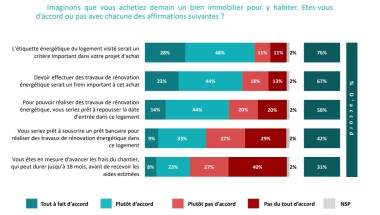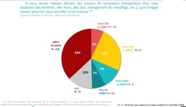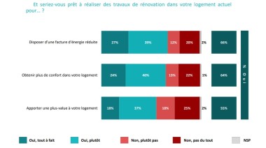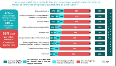 Quels sont d’ailleurs les travaux de rénovation que ces Français ont réalisés ou ont en tête ? C’est d’abord le changement de fenêtres et l’isolation des combles (tous deux à 17 %) suivis de près par le changement du système de chauffage (14%). Pour les travaux envisagés à moyen et long terme : le changement de système de chauffage est cité en premier, puis l’isolation des murs et enfin, l’installation de panneaux solaires et le changement de fenêtres.