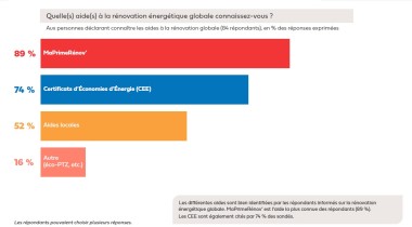 Le calendrier se durcit parallèlement progressivement pour les mises en location avec une interdiction dès 2025 pour les logements classés G, puis F en 2028, et E en 2035. Au total, ce serait ainsi 23 millions de logements classés de G à D qui vont peu à peu être concernés, et le rythme des travaux devraient logiquement s’accélérer. Mais sur le terrain les outils d’accompagnement semblent encore manquer et les copropriétés apparaissent démunies au regard des chiffres de ce sondage. À la question « Connaissez-vous la rénovation globale en copropriété ? », près de trois-quarts des répondants répondent par la négative, constate Hellio, tandis que 70 % ne connaissent pas les aides à la rénovation globale, que constitue la nouvelle mouture MaPrimeRenov’ dédiée aux copropriétés.