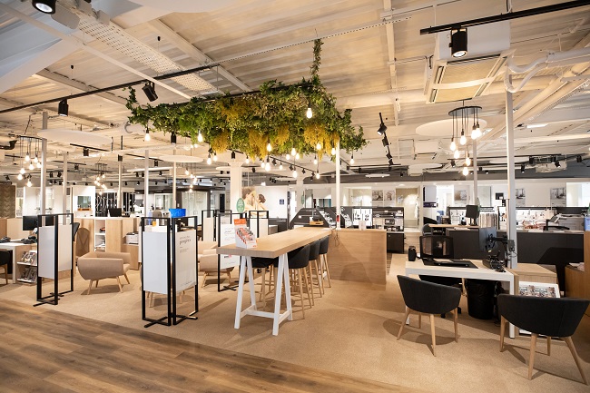 Encore absent mi-juin, l’espace Cuisine qui vient d’être intégré à la plateforme web LaMaisonSaintGobain.fr, devrait aussi être implanté dans la salle d’exposition ; sans doute en lieu et place de la zone Bureau. Afin de « mieux orienter clients dans leur choix », ce showroom partagé dispose de configurateurs 3D, ainsi qu'un outil de visualisation digitale qui permet de scanner chaque produit pour « se projeter dans une ambiance réaliste ».