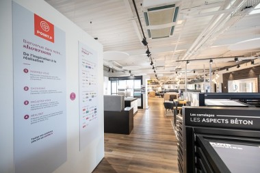 À Champagne-au-Mont-d’Or, dans l’Ouest lyonnais, le nouveau showroom de 1 000 m² qui regroupe les enseignes Point P (500 m²) et Envie de Salle de Bain (500 m²), abrite aussi un “démonstrateur” physique qui reprend le principe de conseils et d’inspiration de la plateforme web LaMaisonSaintGobain.fr.
