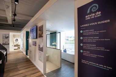 SGDB France poursuit sa conquête du client particulier à projet. Piloté par Raphaël Muller, directeur du marketing de l’offre pour LaMaisonSaintGobain, le nouveau showroom commun entre Point.P et Envie de Salle de Bain dispose d’un espace de 50 m² conçu pour concrétiser tout ce que le client particulier, voire le professionnel, peut retrouver sur le site d’inspiration du groupe en matière d’idées d’aménagement, de matériaux, de conseils techniques et de devis.