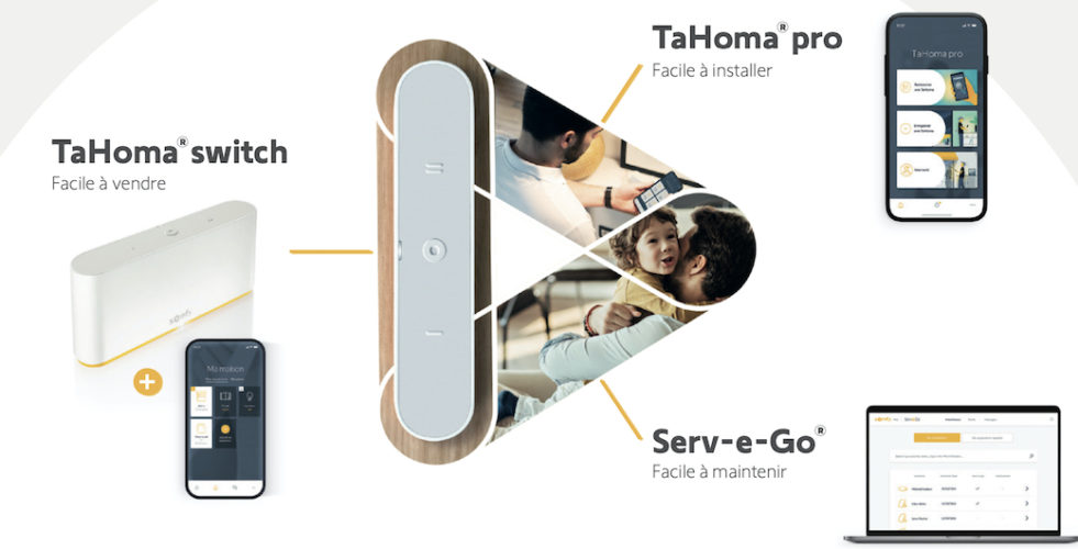 TaHoma Suite a pour objectif de débloquer ces freins. Cette offre est composée de trois services : la box TaHoma switch, l’application TaHoma Pro et la plateforme Serv-e-go. TaHoma Switch est la première commande intelligente de la maison, associée avec l’application TaHoma dont l’ergonomie a été totalement repensée. Cette nouvelle commande vient remplacer l’ancienne box TaHoma qui n’était finalement qu’une passerelle entre un smartphone et des objets. Somfy propose Tahoma Suite à 199 € TTC contre 299 € dans son ancienne version.